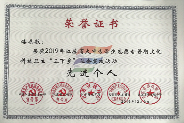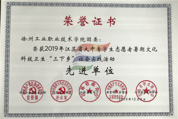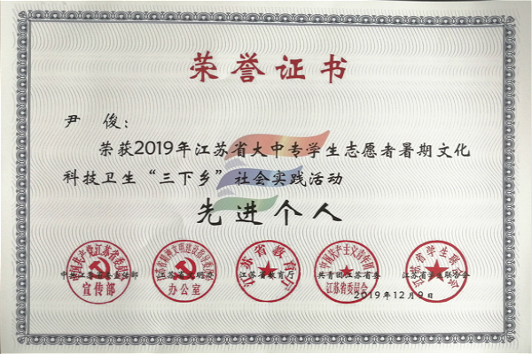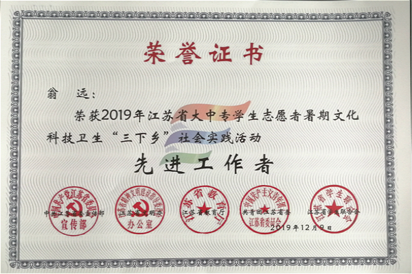 近日,共青团江苏省委员会公布了《关于公布2019年全省大中专学生志愿者暑期文化科技卫生“三下乡”社会实践活动先进集体和个人名单的通知》,我校2019年暑期社会实践活动在全省评比中荣获多个奖项。