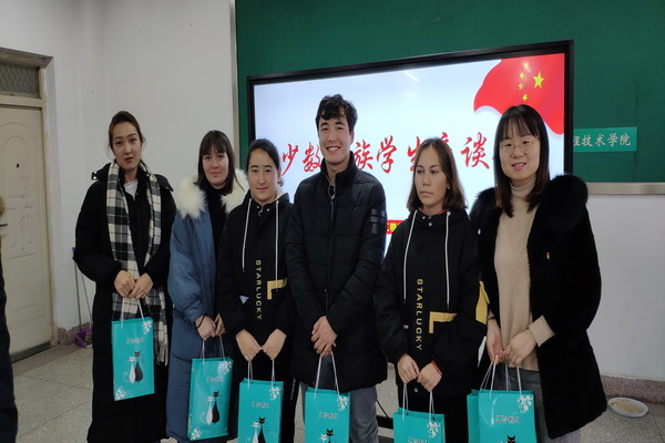会上,刘处长逐个了解了少数民族学生本学期学习和生活情况,对同学们的进步提出了表扬,对同学们提出的困难提出了具体的帮扶措施,对同学们的学习、生活、安全等方面提出了要求;针对部分少数民族学生化学基础薄弱,学习有一定困难的问题,刘兵老师结合多年教学经验,为同学们分析了化工专业课的特点,分享了课程学习的技巧,并现场解答了同学们的学习困惑;高强副院长分析了化工学院的良好就业前景,详细解读了学校的各项资助政策,鼓励同学们对专业学习和职业发展充满信心,积极参加校园文化和体育活动,同时注意假期期间的人身和财物安全,遵守法律法规,安全、愉快地度过假期。座谈会后,化工学院向经济困难的少数民族学生发放了徐州特产礼包。