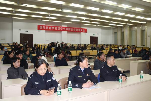 为进一步加强假期留学生安全教育工作,切实提高留学生法律法规意识和人身安全意识,确保留学生宿舍假期的安全与稳定,国际教育学院通过全院教育大会、班级主题班会、宿舍安全检查、微信安全宣传等多种形式手段开展留学生假期安全工作。