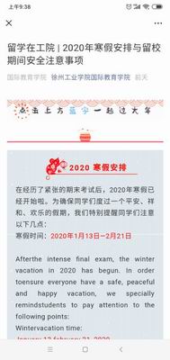 1月6日,召开班主任会议,就假期安全等工作进行布置,要求各班主任以主题班会的形式围绕法律法规、校规校级、假期安全、考勤管理、外出旅行、交通安全等方面开展教育,同时统计班级留校外出人数,建立假期留校学生数据档案。