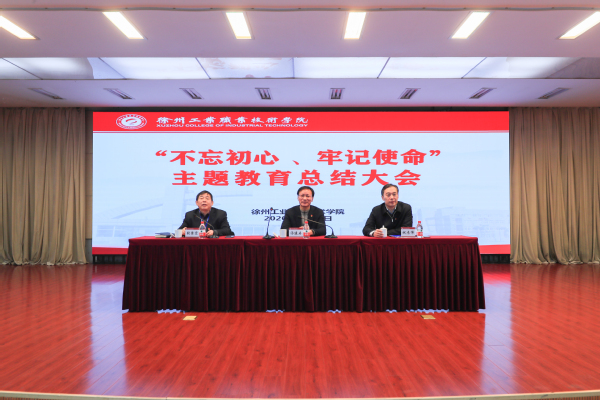 汤建石同志发表讲话。他指出,主题教育开展以来,徐州工业职业技术学院党委认真贯彻中央要求和省委部署,始终把主题教育作为一项重要的政治任务来抓,并结合工作实际,加强领导,精心组织、坚持标准、统筹推进,使主题教育取得了丰硕成果且特色显著。一是突出领导带头示范引领,班子成员坚持把自己摆进去、把职责摆进去、把工作摆进去,形成以上率下、上行下效的生动局面,为主题教育有力有序有效的开展起到了重要的引领作用。二是做到学深悟透,打牢基础,以新思想解放思想、统一思想,进一步增强“四个意识”、坚定“四个自信”、做到“两个维护”;三是突出共振共赢、真抓实改,学校党委坚持问题导向,通过调研走访、座谈交流、意见征集、视察反思等方式查摆问题,按照整改有目标、推进有措施、落实有责任完成有时限的要求,抓好整改落实。四是突出抓牢党支部,提质增效,进一步抓实基层党支部、普通党员的学习教育和检视整改工作,坚持聚焦发展,践行初心使命。