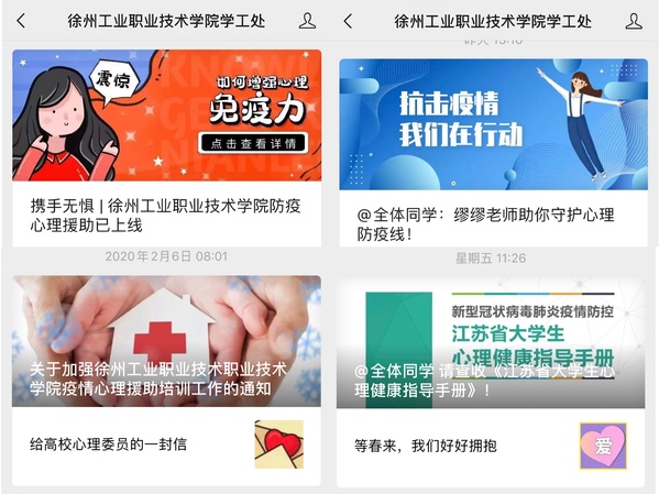 病毒无情,工院有爱。学生工作处大学生心理健康教育与咨询中心构建全方位、立体化、全覆盖的心理干预和疏导机制,积极预防、有效控制了疫情的不良心理影响,引导学生提高心理免疫力,营造积极乐观的情绪、涵养健康向上的心态、倡导科学文明的生活方式,形成了强信心、暖人心、聚齐心的校园氛围。
