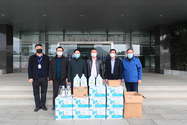 郭经理代表苏州君创餐饮管理有限公司向学院捐赠一次性口罩2000只、额温枪8把、八四消毒液10箱、一次性橡胶手套1000付、免洗抑菌洗手液4桶、消毒酒精2桶。该批物资由疫情防控后勤保障组接收,将按学校统一安排,用于假期及开学后防控一线。