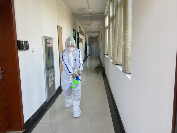 本次演练分为两个场景,分别模拟了学生及外包服务单位人员出现体温异常、咳嗽等症状后勤所负责部分全过程处置流程。在接到事件发生指令后,立即启动防控应急预案,各节点处置人依照处置流程开始进行逐级上报、病例移动、校内初诊、定点诊疗、隔离观察、车辆消杀、环境消杀等后勤部分全过程处置措施。整个演练过程紧张有序,全体参演人员严肃认真,按照既定方案,迅速行动、分工协作,准确完成了疫情应急处置全流程。