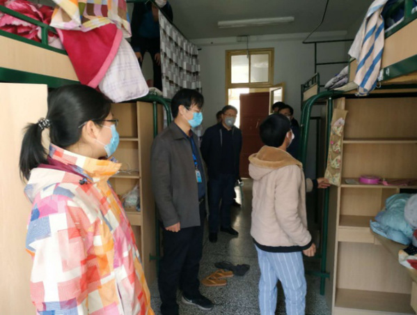 在留学生宿舍,张芳儒院长与留学生们进行了交流,亲切询问他们的生活安排和在线学习情况,耐心细致地回答了他们关心的“专转本”、毕业论文答辩、毕业时间以及体育锻炼等问题。张院长要求,学工处和信息中心要积极联系徐州移动公司,确保网路通畅、流量充足,保障留学生在线学习不受影响;同时国际教育学院要完善留学生在线学习安排,合理引导他们进行体育锻炼,增强学生的体质,提高自身免疫力。