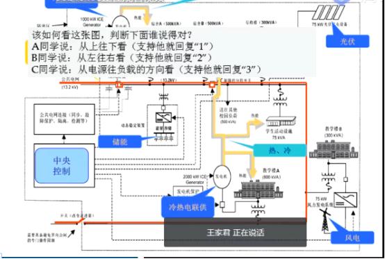在线教学使师生产生了时空分离,教师如何设计课堂提问,如何保证教学效率、效果是广大教师的头等难题。信息电气工程学院的林蒙丹老师在线进行《微电网技术》教学时,启发式教学是林老师的特色,一个一个问题的铺垫,由易到难,由浅入深,紧紧抓住学生的注意力,一环大一环地启发学生思考。林老师在讲解的过程中不断抛出问题,通过借助主动举手、随机摇一摇、讨论区回复等不同学习考核形式,紧紧抓住学生大脑,让学生没有“时空隔阂”,从而课堂学习效果大增。