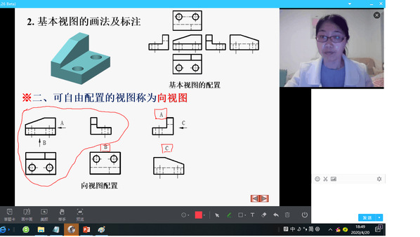 张丽霞老师在线《机械制图》教学时,细分知识点,多软件辅助组织教学,学的会、效果好。线上课堂有别于线下教学,如何选择有效的线上教学模式至关重要。张丽霞老师将1个小时的内容细分成3个知识点,每个知识点目标明确,环节完整,讲授流畅。以腾讯课堂虚拟桌面为载体,充分考虑机械制图抽象化,学生难懂的特点,采用三维软件造出实体,使图形形象化,再利用二维软件绘图演示,辅助腾讯课堂画笔圈出重难点等教学方式以加强学生的理解,手段丰富、组织科学高效,并通过在线提问、线上练习、线下作业等互动方式,掌控学情。PPT制作精细,图文并茂,层次清晰;从课堂提问、练习等看出,学生学的会,教学效果好。