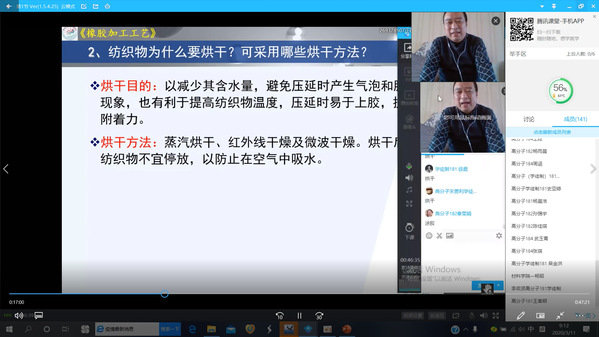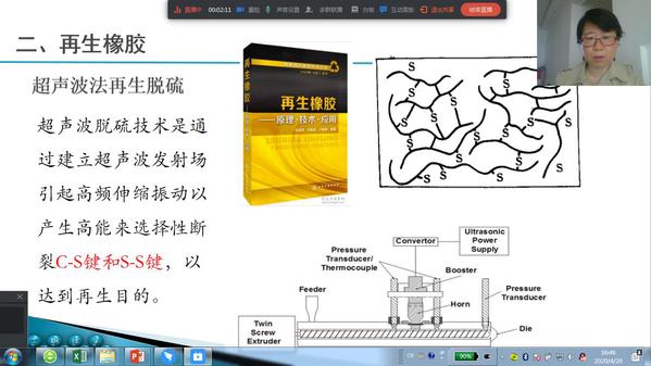 杨慧老师的《橡胶材料与配方》课,从“胶粉”到“再生胶”,简单的知识点,带着学生走进一个生动的绿色橡胶的科学殿堂。“面对着不同的学生,我们要因材施教”杨慧老师如是说。面对高分子(3+2)本科班的学生,他们在专业方面未来还要走的更远,需要获得更多的专业基础知识来为后续课程的学习进行积累。课堂上,杨慧老师从“胶粉”和“再生胶”的区别着手,介绍了相关国家标准和二者在橡胶绿色环保领域的应用以及性能、制备方法等。用通俗易懂的语言、最新的案例,和同学们在这个云端课堂里进行了一场生动的科学交流。