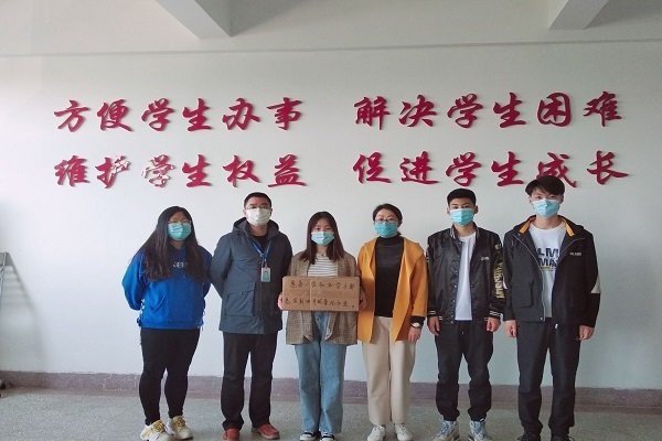在疫情防控这样特殊的日子里,很多老师奋战在学校抗疫一线,辅导员老师们更是每天联系学生了解动向,关心同学们的身心健康状况。学生干部在与辅导员的沟通中,了解到学校的防疫工作在有条不紊的推进,同学们想尽自己的绵薄之力为学校贡献一点力量,在主要学生干部的倡议下,团支书们自发捐赠自己的零花钱,一元两元,积累后,便带来一片晴天,一天两天,累加起来,便是一束不息的阳光。经过努力,滴水汇聚成清泉。口罩买来之后,同学们郑重地在箱子上面签上了自己的名字,表达他们对学院师生的关心和爱,希望能给学院湖北疫情灾区学生、贫困家庭学生以及在一线工作的老师们付出一份绵薄之力。陈竹副院长代表学院接收了捐赠,陈院长向同学们表示了衷心的感谢,并表示这批口罩学院将统一调配给有需要的同学使用,师生协力全力以赴打赢疫情防控阻击战。