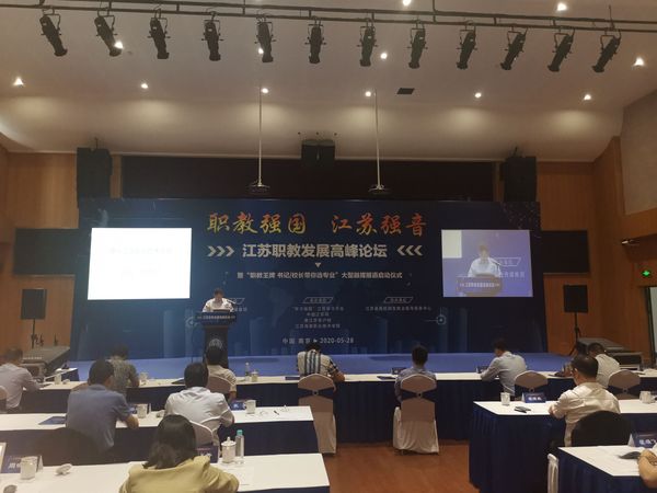 5月28日,由新华报业传媒集团主办,“学习强国”江苏学习平台等承办的“职教强国·江苏强音”江苏职教发展高峰论坛暨“职教王牌·书记/校长带你选专业”大型融媒报道启动仪式举行。来自 “双高计划”、“国家示范”、“国家骨干”、“江苏示范”的24所高职院校的书记校长参加了本次论坛,我校院长张登宏应邀参会并做主题演讲。