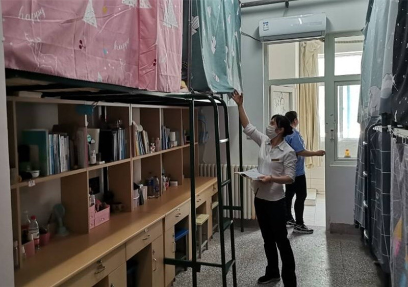 检查前,党委副书记李红强调此次检查的重要意义并提出了明确具体的要求。随后,检查人员分成10个小组,重点对宿舍是否存在违规使用大功率电器、存在私拉乱接现象,防盗、防火等设施、设备是否完好,学生个人是否存放管制刀具或其他违禁物品等情况进行摸排。通过检查发现,大多数宿舍安全状况良好,但仍有少数学生安全防范意识淡漠。检查组对违规电器予以没收,对住宿规定进行重申,并对违纪学生进行批评教育。同时,检查组老师与宿舍同学进行深入交谈,提醒大家在提高自身安全防范意识的同时,养成良好的作息习惯和文明习惯,树立节约意识,并对疫情期间如何消毒、通风进行了示范。