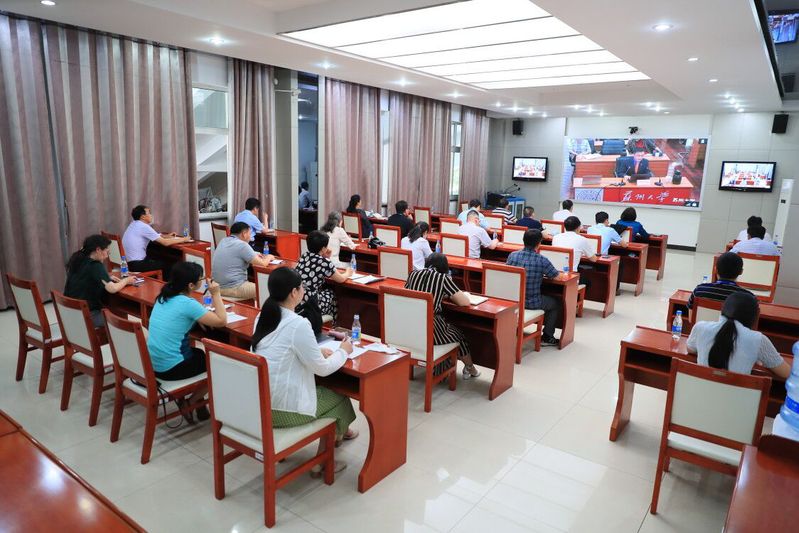 6月1日下午,江苏省教育厅组织召开全省教育系统传达学习2020年全国“两会”精神报告会。江苏省委教育工委副书记、省教育厅党组成员苏春海主持报告会。我校在图书馆视频会议室设立分会场,党委中心组全体成员,各总支书记,学工部、教师工作部、团委负责人及全体思政教师收看了报告会。