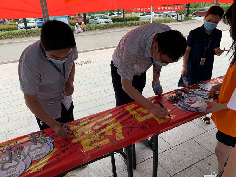 6月5日中午,工商管理学院学生会组织部干事、积极分子等60余人参加此次活动。现场悬挂环境保护宣传横幅,设有环境保护条例、资源、垃圾分类和相关环保知识的宣传栏。活动中,志愿者分成A、B两个小组分别到宿舍区以及食堂门口派发环保宣传资料,耐心与师生沟通,讲解相关环保知识,增强了师生参与生态环保的意识,树立了低碳绿色生活理念。让师生更好的了解改善环境的重要性,并倡议师生以实际行动自觉杜绝一切破坏环境的行为,共同维护绿色生活环境。