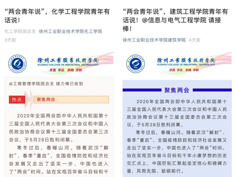 为全面学习宣传贯彻全国两会精神,引导广大团员青年加强政治理论学习,激励青年将自己的梦想融入中华民族伟大复兴的中国梦,近日,我校各青年学习社组织开展“两会青年说”线上学习接力活动,深刻领悟“两会”精神,接力砥砺奋斗。