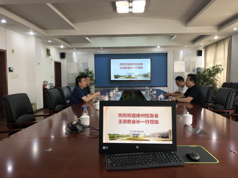6月14日上午,徐州校友会会长王宗乾、秘书长李军回母校洽谈交流,鲍桂楠副院长热情接待了王会长一行,产教融合办公室等部门负责同志参加洽谈会。