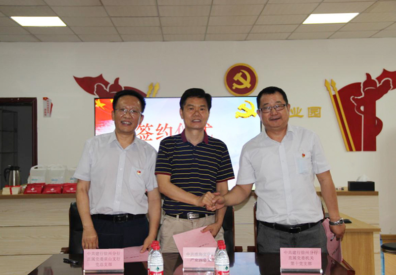 为深入贯彻落实十九大和习近平总书记系列重要讲话精神,全面开展基层党建共建活动,进一步探索创新党建工作,搭建“金园、金企”服务对接。6月16日下午,淮海文化科技产业园党支部、大学科技园总经理张恒中,中共建行徐州分行党委机关第十党支部书记、普惠金融部总经理林杰,中共建行徐州分行党委泉山支行党总支书记、泉山支行行长宋晓峰,以及来自三个总支(支部)的党员代表开展了党组织三方共建签约活动,园区部分企业共同参加了签约会。