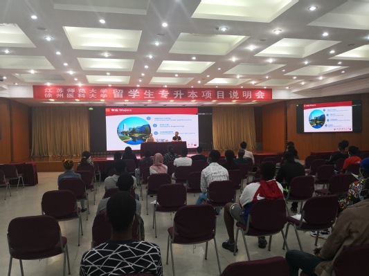 江苏师范大学和徐州医科大学的老师分别介绍了自己学校的基本办学情况,可对接专业、申报条件、奖学金种类、住宿环境和申报方式。在提问环节,留学生们就申请条件、对口专业、申报流程、考核方式、入学手续、专业课程等方面问题进行了询问,两个大学的老师们对学生疑问给予了耐心的解答,并对我校留学生流利的汉语表达水平给予高度的评价。学历提升是我校留学生关注的重要事情,国际教育学院一直积极为留学生联系省内外本科院校,寻求合作机会,为留学生搭建“专升本”合作平台,让更多的学生有机会转入本科继续学习。目前,我校17级很多留学生已经被南京信息工程大学、常州大学、扬州大学等高校录取,预计2017级留学生升本率将在40%左右。