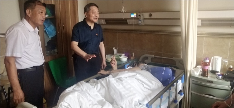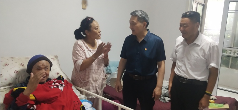 7月2日,退休支部支委代表全体退休党员带着党组织的关爱,带着退休党员对战友的思念,前往医院、养老院、家庭看望了生病和行走不便的老党员。刘兴龙老师特意戴上党徽,在风中等候多时,迷茫的双眼见到我们时明亮起来。象思念迟来的亲人,像期盼滚滚的暖流,我们都深深地感动了。谈话中,老同志们纷纷表示:感谢党组织给他们过了一个特殊的政治生日。