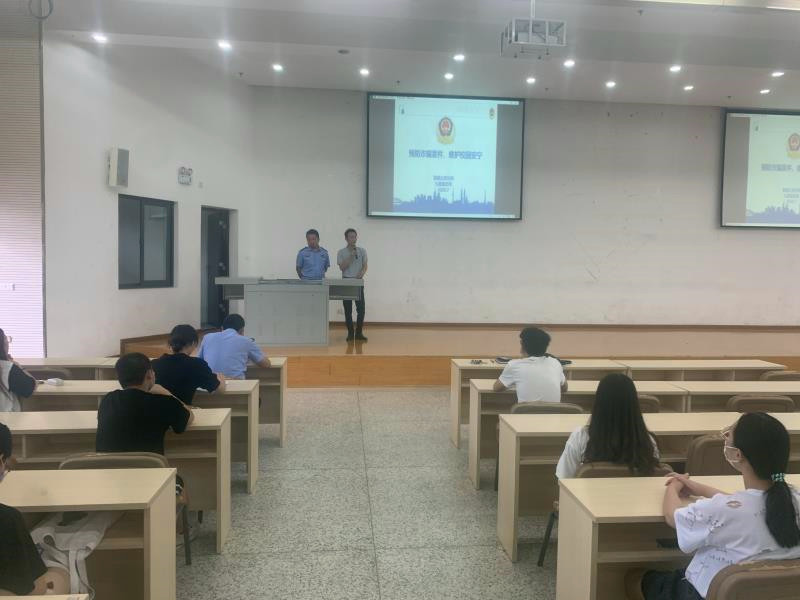 警校联合,群防群控。学校联系辖区派去所积极开展主题教育活动。活动通过宣传展板、条幅、发放宣传材料、签名等多种形式开展集中宣传,并特邀辖区派去所警官为师生讲解非法集资、电信网络诈骗的形式、手段、特点,校园网贷、套路贷的危害以及必要的防范技能,共有200余名学生代表、20余名安全员参加讲座。