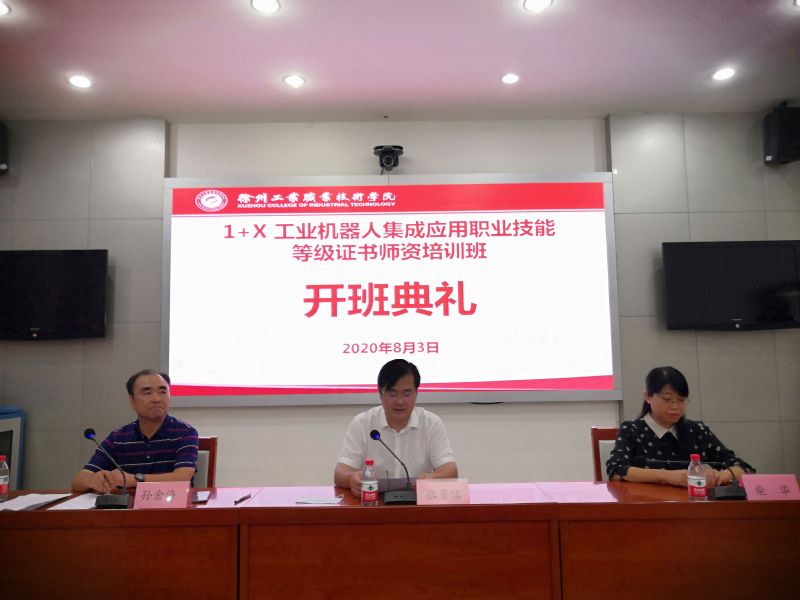 在开班典礼上,张芳儒副院长首先对组织这次培训的工作人员和老师表示了感谢,对参加这次会议的所有学员表示热烈欢迎。张院长简要介绍了我校的基本情况以及在“双高建设”和产教融合方面取得的一系列成就以及我校与北京华航的产教融合成果以及在“1+X”项目方面所做的工作。他表示,作为“双高建设”单位,我校和北京华航从2016年起就保持非常紧密的校企合作关系,校企双方共建江苏省工程装备智能制造产教融合集成平台,教育部工业机器人应用人才培养中心,华航为我校在工业机器人专业建设上提供了设备、技术和人才支持,这次共同举办本期培训班是水到渠成,珠联璧合,也是校企合作的又一成功典范。本次培训对1+X项目的推广、考工考证、人才培养、师资建设等具有重大意义。