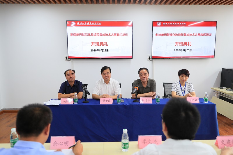 8月25日上午,江苏高职省培制造单元智能化改造和集成技术大赛教练培训在我校开班。我校副院长张芳儒、江苏省职业院校技能大赛组委会办公室副主任狄建雄出席开班典礼,人事处、机电学院相关负责同志及北京华航唯实机器人科技股份有限公司培训工程师和报名参训的22位高职院老师参加典礼。机电学院院长孙金海主持开班典礼。