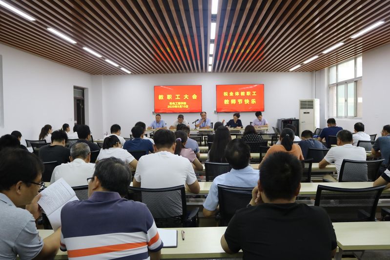 9月10日,机电工程学院召开全院教职工大会。孙金海院长开始就学院本学期的工作思路、工作计划和开学初工作等任务作了工作部署,对高质量完成各项工作提出明确要求,鼓励全体教职员工鼓足干劲,提升能力,自觉肩负起立德树人的神圣使命,在教育教学工作上尽心尽责、恪尽职守,在科研事业上勇攀高峰、勇挑重任,为机电工程学院建设发展贡献更多力量和智慧。王敏书记就师风师德建设、安全稳定工作和疫情防控工作提出了具体的要求,号召全体教职工深入学习领会习近平总书记关于师德师风的重要精神指示,自觉做到守初心、担使命,牢记立德树人的使命,做新学期做崇高师德的践行者。
