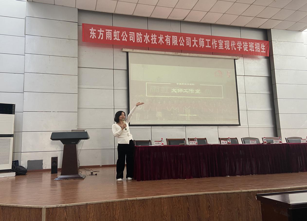为充分发挥学校与企业的双方优势,培养高素质、高技能的应用型人才,2020年9月22日,由北京东方雨虹防水技术股份有限公司与我校建筑工程学院共同举办的“东方雨虹大师工作室现代学徒制班组班仪式”在学术报告厅顺利举行。东方雨虹集团雨虹学院院长周园、技能大师钟友良、建筑装饰专家宋合斌和建筑工程学院的负责同志共同出席此次组班仪式。