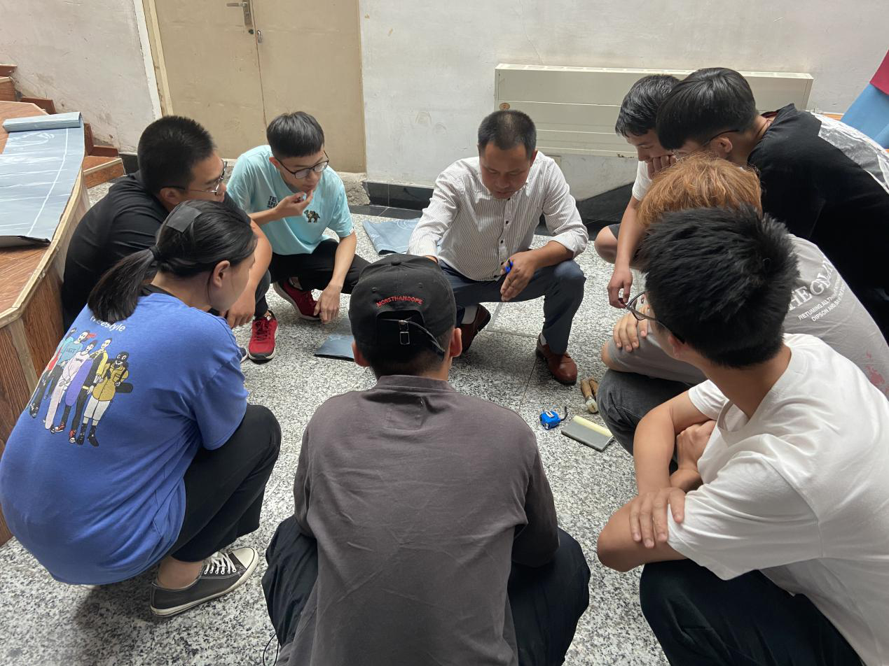 仪式结束后,同学们积极踊跃地扫描二维码进行报名。随后,技能大师钟友良现场给学生进行防水技能演示并对学生进行指导。同时给学生提供相关材料,让学生亲自操作,锻炼了学生的动手能力。
