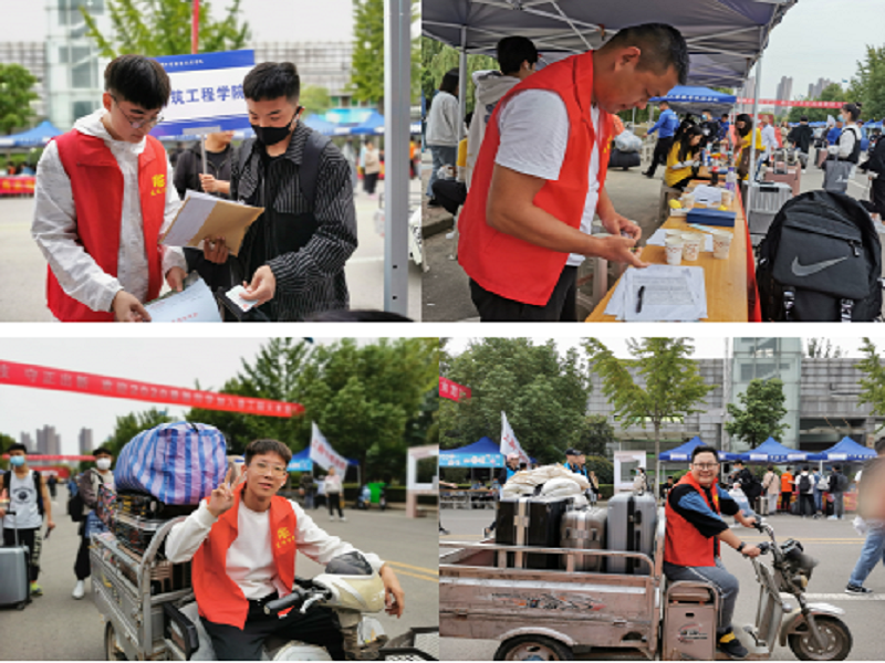 以微笑做好服务,以行动温暖新生。校园主干道,到处可见忙碌的身影,他们有一个共同的名字叫——建工青年!今年因疫情防控原因,家长及校外车辆禁止入校,作为新生,面对一切陌生的新环境,急需熟悉校园环境、答疑解惑,此时志愿者显得尤为重要。经过前期面试和选拔,建筑工程学院共遴选出32名志愿者,为新生提供各项服务,值得一提的是,迎新期间,还有15名同学自发来到迎新现场担任临时志愿者,为新生便捷入校贡献一份力量。10日6点30分,伴随着濛濛细雨,身着印有原创设计logo红马甲的志愿者们早早地等候在报到现场迎接各位小萌新的到来。解答疑惑、维护秩序、搬运行李……他们奔波忙碌,及时为新生和校外焦灼眺望的家长提供温馨周到的服务。他们辛勤的付出和微笑的脸庞,让新生感受到了青春的正能量,一幕幕温馨感人的迎新画面在校园里真情呈现。他们以自己的实际行动为新生上了生动的一课,成为校园迎新工作一道靓丽的风景线。