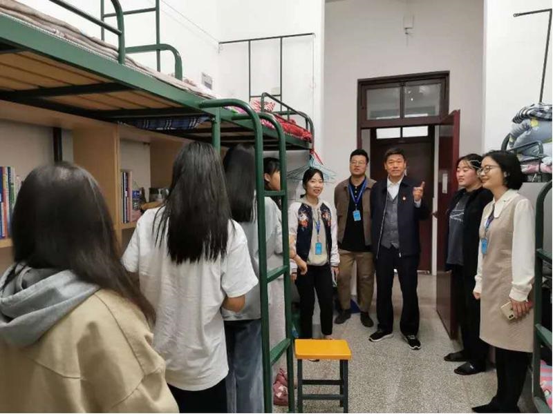 新生入住手续完成后,10月11晚,辅导员携各班班助到新生宿舍,进行慰问检查。10月12 日下午3点,院领导深入新生宿舍走访慰问。看着新生们热情洋溢的脸庞,张妍妍书记说:“你们作为一名新生,来到了一个新的‘家’——自己独立的家。这个家很特殊,她是由不同地方,不同姓氏的青年共同组成的,希望你们珍惜青春时光,练就扎实本领。”此外,辅导员偕同班助对各班新生详细解读了学生宿舍的管理要求,旨在帮助新生尽快适应集体宿舍生活,并鼓励他们争取获得星级宿舍的荣誉。