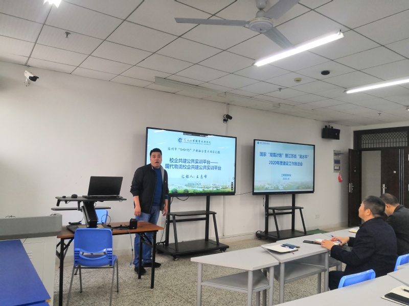 相关项目负责人王志峰副院长和耿波教授分别就2020年度国家双高建设计划中工商学院承担的建设任务、江苏省高水平高等职业院校建设负责的二级项目、徐州市职业教育“5+5+15”产教融合重点建设项目现代物流校企共建实训平台、江苏省高水平骨干专业物流管理专业建设、江苏省高水平专业群申报(232重点专业群)等五项重点工作展开具体介绍。