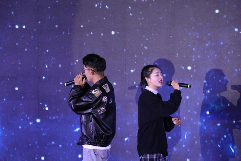 新生辅导员表演节目,是学院历届迎新生晚会的保留环节。今年,2020级年级辅导员于晴携手两位新生班主任吴昊繁、刘帅共同合唱了《暖暖》,引发了同学们的集体合唱,将整场晚会烘托到了高潮。