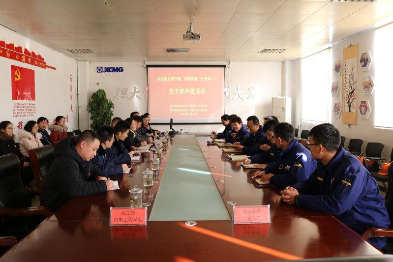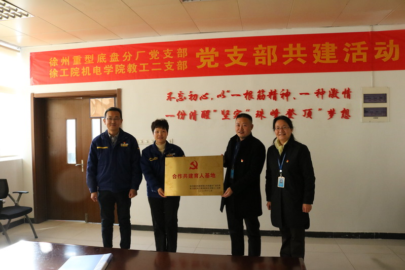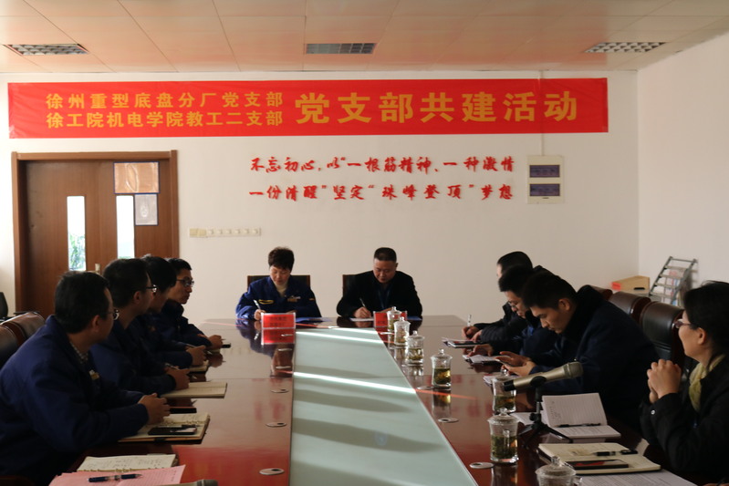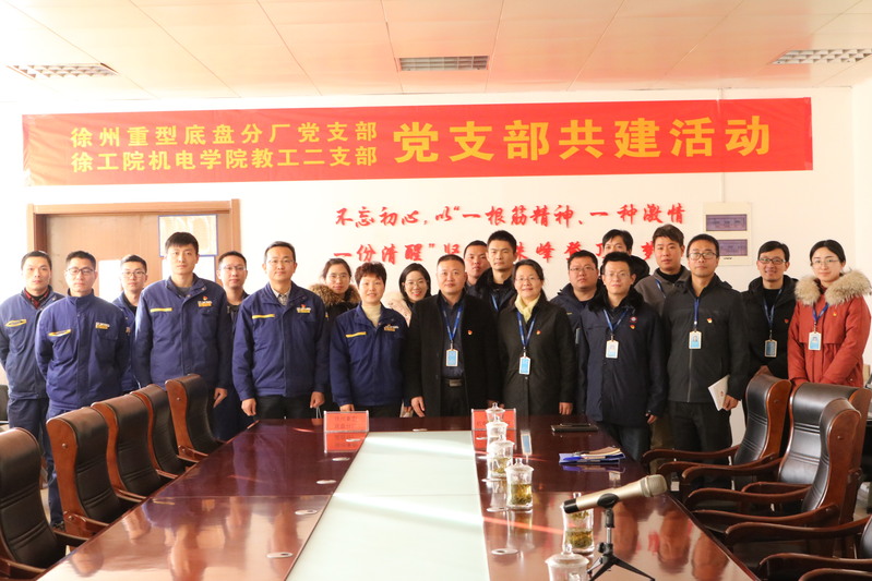 为深入贯彻落实习近平总书记提出的“三全育人”理念,提升人才培养的针对性和实效性,机电学院党总支教工第二支部与徐州重型机械有限公司底盘分厂党支部经过前期协商、交流,于12月4日在徐工重型底盘分厂举行以“校企双支部引领,协同实施‘三全育人’”为主题的支部共建活动。机电学院教工第二支部全体党员和徐工重型底盘分厂党支部党员代表参加了本次活动。