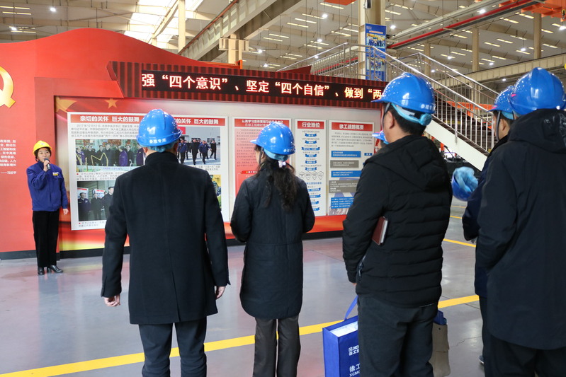 徐州重型机械有限公司底盘分厂党支部是徐工集团党建的一面旗帜,是江苏省党支部工作室示范点,在2017年12月习近平总书记视察徐工集团时,就专门考察了底盘分厂党支部,和党支部胡长森书记亲切握手,党支部“五个起来”工作法受到了习近平总书记的高度赞扬。为了更加深入学习徐州重型的党建精髓,教工第二支部全体党员在胡书记带领下重走习近平总书记视察徐工之行,参观了徐工重型展厅和底盘分厂党支部园地。