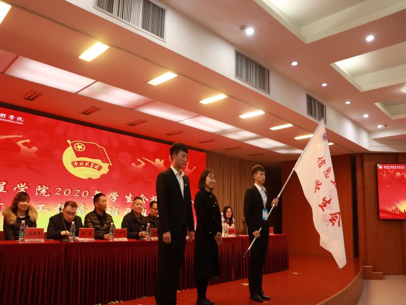陈院长宣读了新一届学生会聘任名单。随后,庞书记为新一届学生会授旗。新一届学生会主席团成员麦尔哈巴·如孜带领全体学生宣誓,铿锵有力的声音响彻会场,展现了全体青年励志服务同学的决心和良好精神风貌。