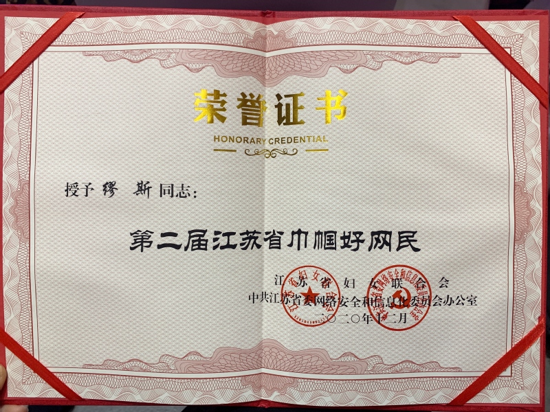12月16日,由全国妇联宣传部指导,江苏省委宣传部、省委统战部、省委网信办、省妇联共同举办的江苏女性融媒体五大行动在南京正式启动,为表彰先进、树立榜样,充分发挥先进典型的示范引领作用,活动中揭晓了第二届江苏省十佳巾帼好网民,我校缪斯老师作为“线上心灵守护者”,与全省其他九位各行各业的优秀女性共同获此殊荣。