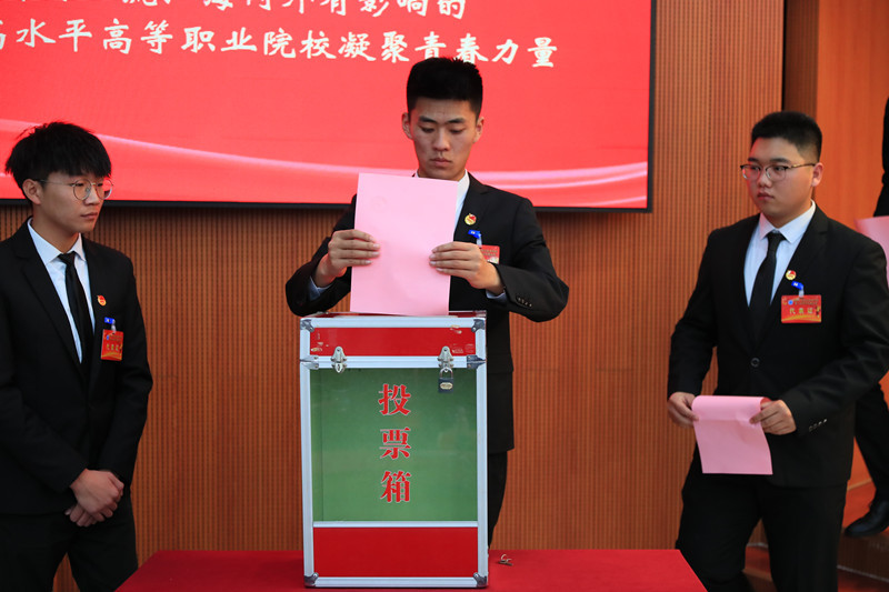 在《国际歌》中,徐州工业职业技术学院第二次学生代表大会胜利闭幕。