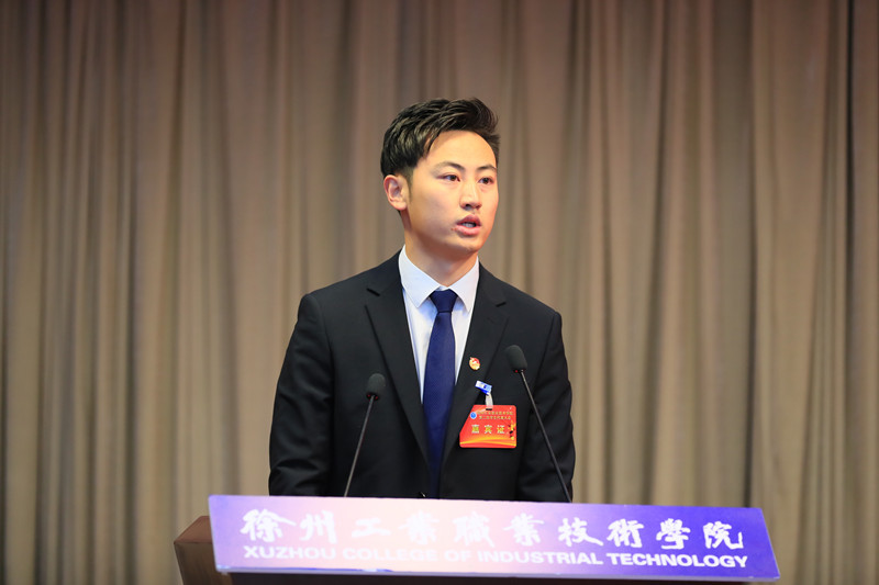 上午9:40,第一次全体会议在图书馆报告厅召开,代表们听取了第一届学生委员会主席王威代表第一届学生委员会所作的题为《强化政治引领服务同学成长,为打造国内一流、海内外有影响力的服务区域性高水平高等职业院校凝聚青春力量》工作报告和第一届学生委员会副主席刘雲斌所作的《关于修订<徐州工业职业技术学院学生会章程>》的报告。