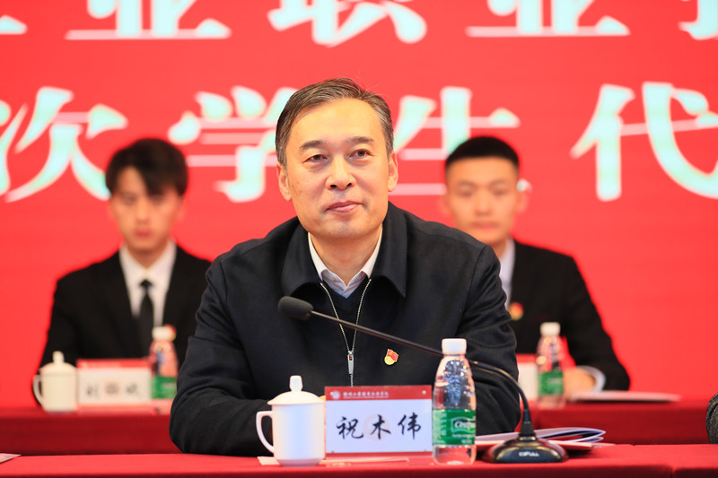 上午9点,大会在庄严的国歌声中拉开序幕。党委书记祝木伟代表学校党委发表重要讲话。他向我校第二次学生代表大会的召开表示热烈的祝贺,肯定了我校学生会在开展思想引领、深化组织改革、服务学生成长成才、抗击新冠肺炎疫情等方面所取得的成效,并提出三点希望:一是以政治引领为根本,听党话、跟党走,增强学生会组织的政治性。要加强自身学习,坚持用习近平新时代中国特色社会主义思想武装头脑;要面向全校青年学生,持续推进爱国主义、集体主义和社会主义教育;要在学生会深化改革中,以加强对同学的政治引领为根本。二是以服务同学为宗旨,务求工作实效,提高学生会组织的群众性。打造同学在关键时刻“想得起”的学生会、构筑同学在需要时候“找得到”的学生会、争创同学在困难时候“靠得住”的学生会。三是以从严治会为遵循,纵深推进改革,提升学生会组织的先进性。要在德、智、体、美、劳各个方面争当先锋,在垃圾分类和光盘行动这些“关键小事”上发扬先进性,引领“新时尚”。同时,祝书记强调,全校各级党组织要把学生会组织的健康运转作为明确的主体责任,把学生会组织建设和改革纳入党群工作整体格局中进行谋划。校团委发挥明确的指导作用,全校各部门要协同配合、积极推进、形成合力,在师资队伍、骨干培养、评奖评优、工作场地、活动经费等方面给予充分的支持和保障。全校各级领导干部、全体教职员工都要做青年朋友的知心人、青年工作的热心人、青年群众的引路人。