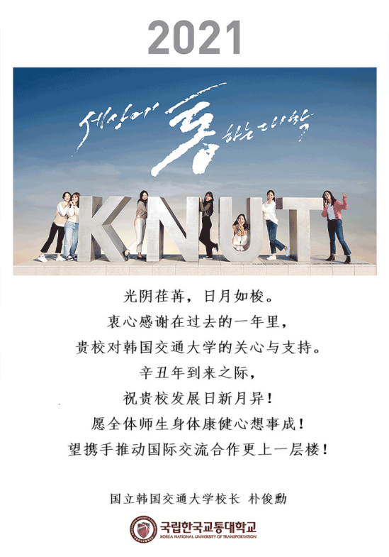 韩国国立交通大学作为我校建立的第一批国际友好高校之一,在2020年疫情之初就来信对我校致以诚挚的慰问,期待我校抗击疫情成功。此次,在2020年12月28日的来函中,校长朴俊勳不仅对我校给与的关心与支持表示再次感谢,作为我校长期的合作伙伴,校长朴俊勳还期待能尽快与我校开展新的合作与交流,共促两校的繁荣。