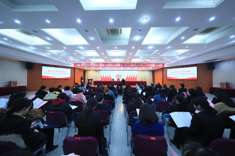 徐州市妇联副主席王晓丹宣读了同意成立徐州工业职业技术学院妇女联合会的批复文件;大会主席团副秘书长张妍妍作了妇女工作报告;江苏师范大学妇联主席裴笛代表在徐高校致辞;校团委书记安莹代表群团组织致辞。