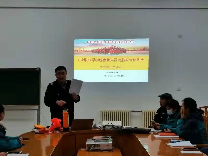 为进一步强化我校学生公寓管理人员的消防安全知识,提高消防安全意识,贯彻“预防为主、防消结合”的消防工作方针。12月29日上午,我校学工处邀请江苏安宣应急技术有限公司张世才主任为宿管中心公寓管理人员开展消防安全知识培训。