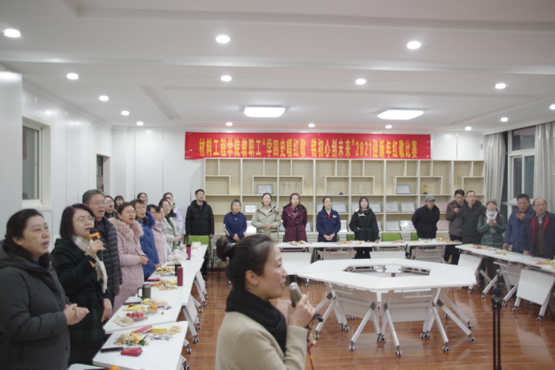 为进一步推进学院教师深入“四史”学习教育,积极营造火红的节日氛围,12月31日下午,材料工程学院教职工“学四史唱红歌,铭初心创未来”2021迎新年红歌赛在B04-304举行,学院领导班子和学院全体教师参加了此次活动。