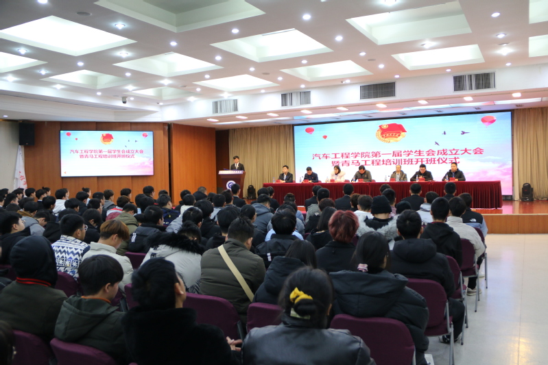 近日,汽车工程学院第一届学生会成立大会暨青马培训班开班仪式在图书馆报告厅顺利举行。学工处处长阮浩,汽车工程学院院长肖亚杰,校团委副书记庞世华,汽车工程学院党总支副书记王墀锡,辅导员周开源、魏宇川出席会议。校学生会、大学生自管会、各二级学院学生会学生代表,汽车工程学院第一届学生会全体成员,学生代表共300余人参加了会议。会议由汽车工程学院团总支书记翁远主持。