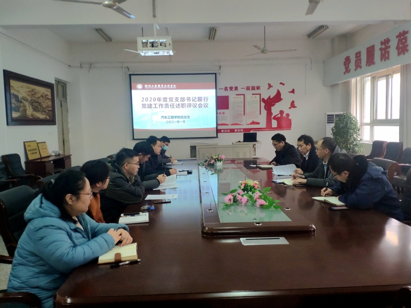 为深入学习贯彻习近平新时代中国特色社会主义思想和党的十九大及十九届五中全会精神,认真落实基层党建工作责任制,根据《关于开展2020年度基层党组织书记履行党建工作责任述职评议工作的通知》要求,1月15日,汽车工程学院党总支组织召开2020年度党支部书记履行党建工作责任述职评议大会。学院党总支委员、党支部书记、党支部委员参加了会议,会议由党总支书记顾广辉主持。
