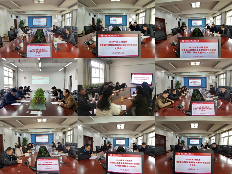 根据学校党委统一部署,1月22日,我校第三轮巡察第一、二、三巡察组分别召开了巡察工作反馈会,向材料工程学院党总支(江苏省橡胶循环利用工程技术研究开发中心、橡胶循环利用协同创新中心)、建筑工程学院党总支、后勤党总支、后勤服务中心(卫生所)、国有资产管理处(资产经营有限公司)、技术转移中心有限公司、党委教师工作部(人事处、教师发展中心)、新沂学院建设办公室、妇女联合会等九家单位现场反馈巡察意见,并提出整改要求。