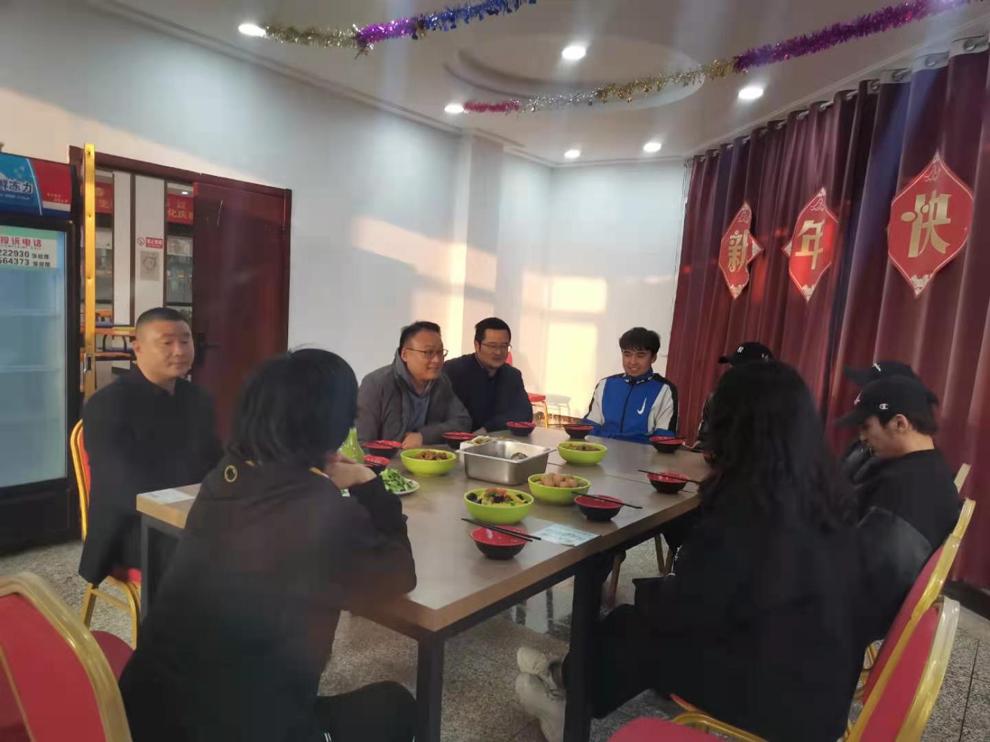 在装饰一新的学校一食堂,李红副书记和各二级学院领导为留校过年的学生发放“新年大礼包”并送上新春祝福。在座谈时,李书记指出:为了共同的抗疫目标,部分同学选择留校就地过年,自觉减少流动,这就是对全国抗疫工作的支持,是舍小家顾大家,是在为抗疫做贡献!虽然今年无法回家与家人团聚,但是大家可以把学校当作自己的家,学校会在各方面做好保障,确保关爱不断线、服务不打折,让同学们在学校这个大家庭中感受到温暖。