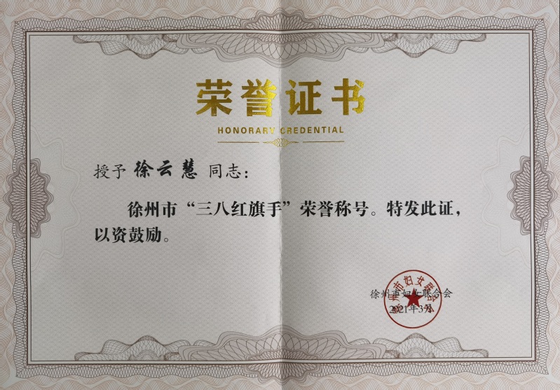3月8日,在徐州市“三八”国际妇女节111周年纪念大会上,我校荣获“徐州市三八红旗集体”,徐云慧老师荣获“徐州市三八红旗手”荣誉称号。此次共授予58个徐州市三八红旗集体,100个徐州市三八红旗手。