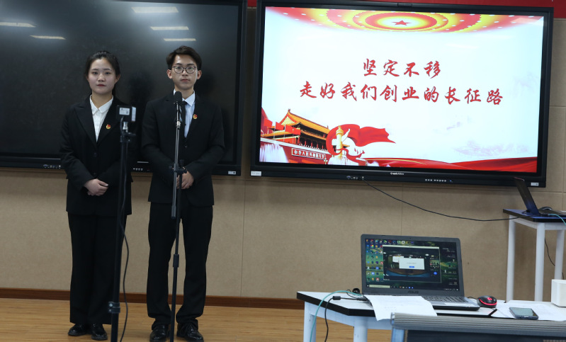 3月12日,我校“传承红色基因,践行初心使命”大学生“返家乡”实践成果汇报会暨第十七届“挑战杯”全国大学生课外学术科技作品竞赛红色专项活动校内选拔赛在图书馆教师发展中心成功举办。副院长鲍桂楠、创新创业学院院长吉智、团委书记安莹出席本次活动,同时到场的还有各学院党总支副书记、团总支书记和师生代表。根据疫情防控要求,活动在B18-501智慧教室设置了分会场。8支优秀团队通过视频播放+展示汇报的形式,从实践过程、成长体会、实践成果等方面进行了汇报展示。