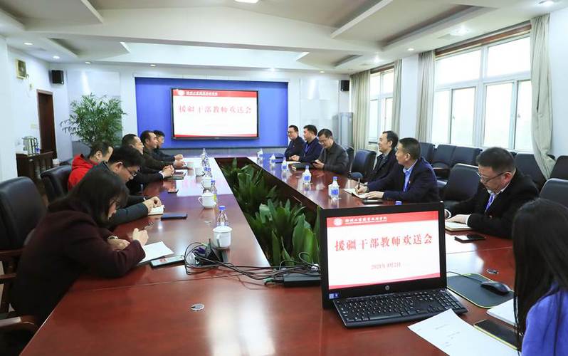 4月2日下午,我校召开援疆教师欢送会。党委书记祝木伟,副院长鲍桂楠、张芳儒,相关部门、二级学院负责人及援疆教师参加活动。
